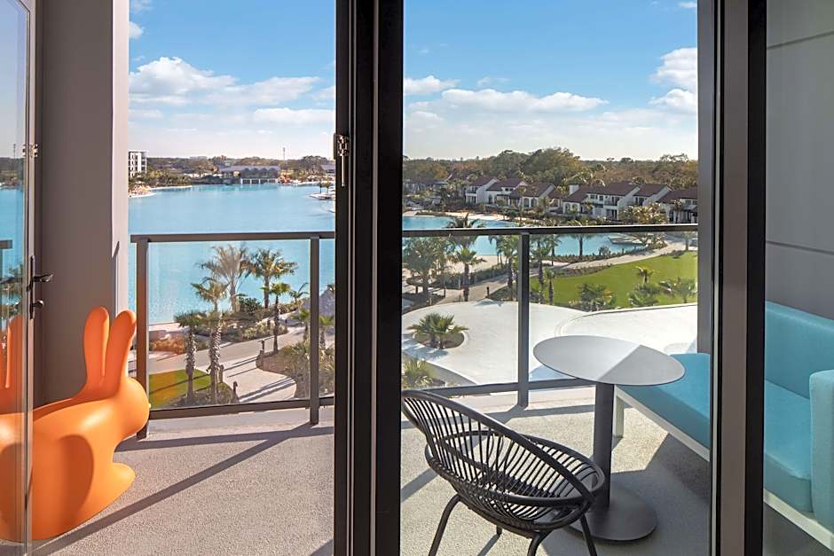 Nature View Luxury 1 Bdr Suite- King- Balcony is 592 square feet and includes a double bed 131-150 width plus desk, satellite tv , hairdryer, tea and coffee making facilities , safe, and bathrobes.